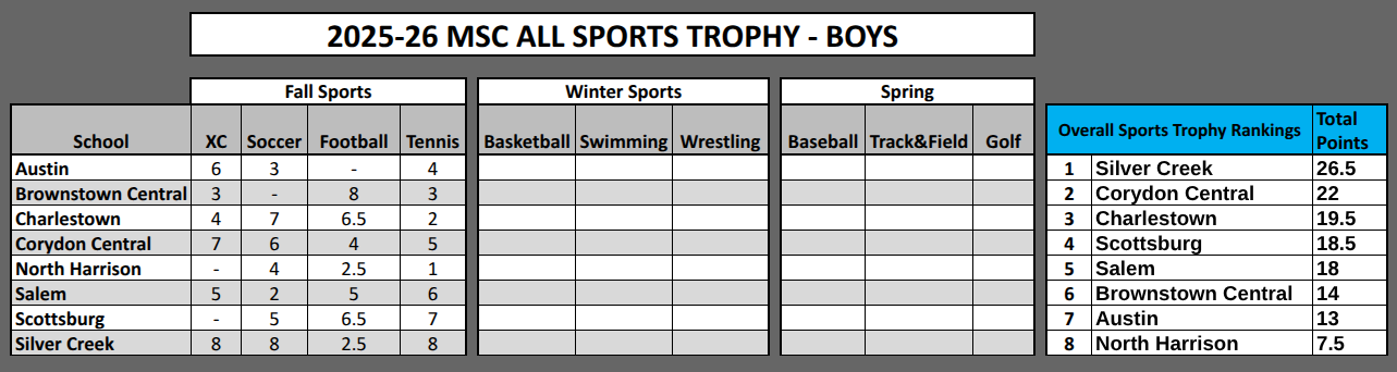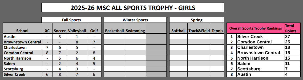 2025-2026 MSC ALL-SPORTS TROPHY STANDINGS